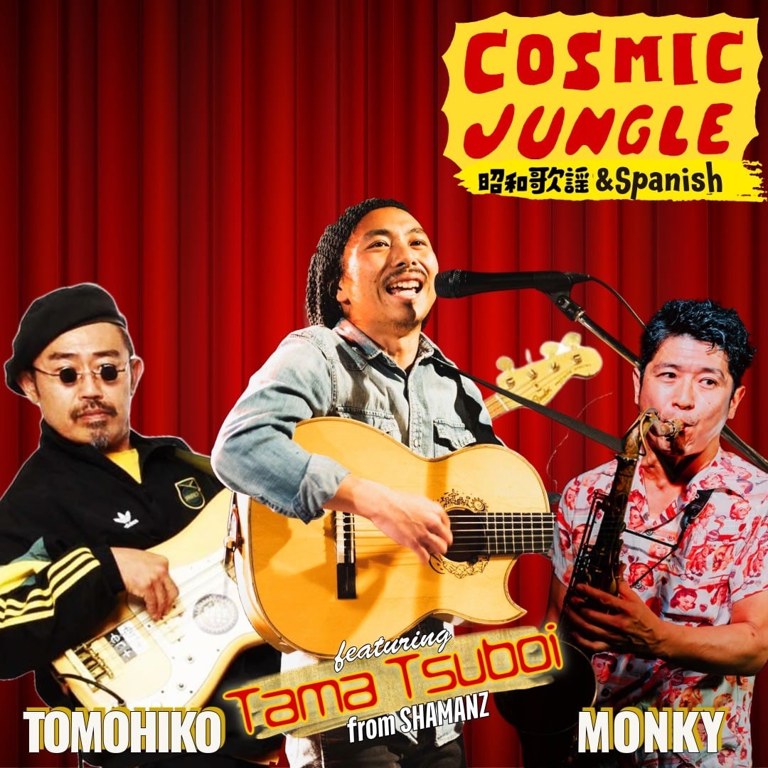全国のミュージックシーンでジャンルレスに活躍し、スモーキーな音色で魅了するSAX奏者 MONKY。SUPER BUTTER DOGのベーシト、TOMOHIKO HEAVYLOOPERの二人からなるCOSMIC JUNGLE。今回はSHAMANZのフロントマンであり、フラメンコ・ギターの名手で魅惑の声を持つボーカリストTama Tsuboiを迎えて、珠玉の名曲をスパニッシュでJazzyなアレンジでセッション!