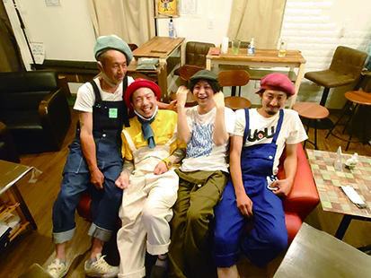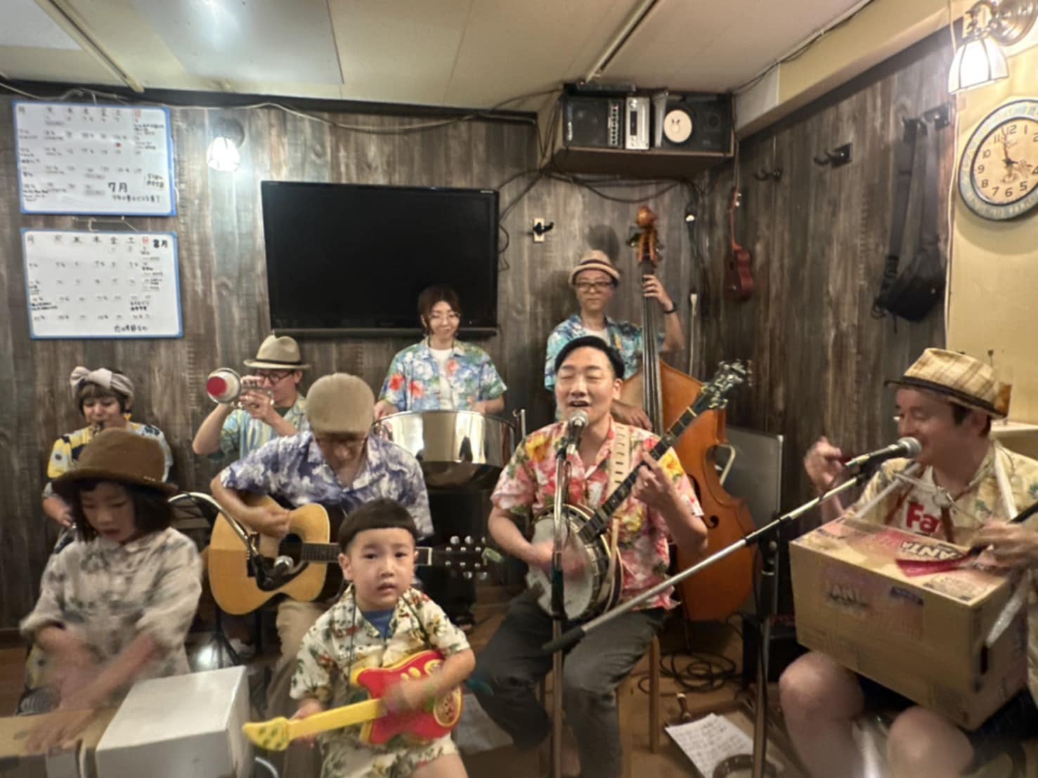 大学の友人たちで、バンバンバザールのコピーバンドとして結成。多少の脱退やメンバーチェンジを経つつ、ほぼオリジナルメンバーで20年以上にわたり活動中。2014年に作曲した「シモキタ音頭」は、今や下北沢の盆踊りの定番曲として街の人々に愛されている。