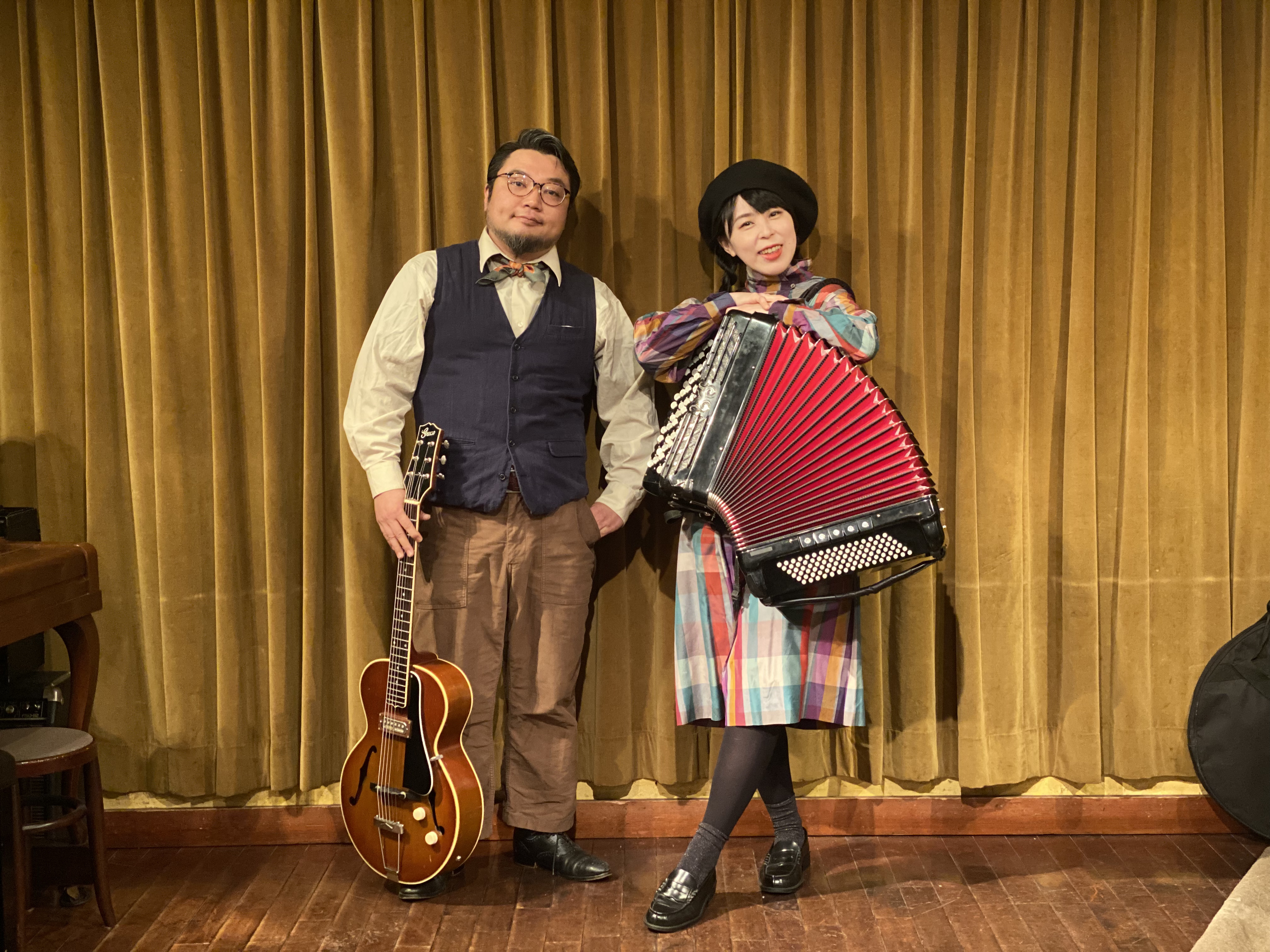19世紀から20世紀初頭の大衆音楽を独自のアレンジで演奏する集団。ギタリスト井上大地を中心に、竹廣類(アコーディオン)、服部将典(コントラバス)、大澤公則(ドラム)らによる編成で活動。2020年結成以来、東京近郊で定期的にパフォーマンスを行う。今回は井上と竹廣によるデュオスタイルで参加。