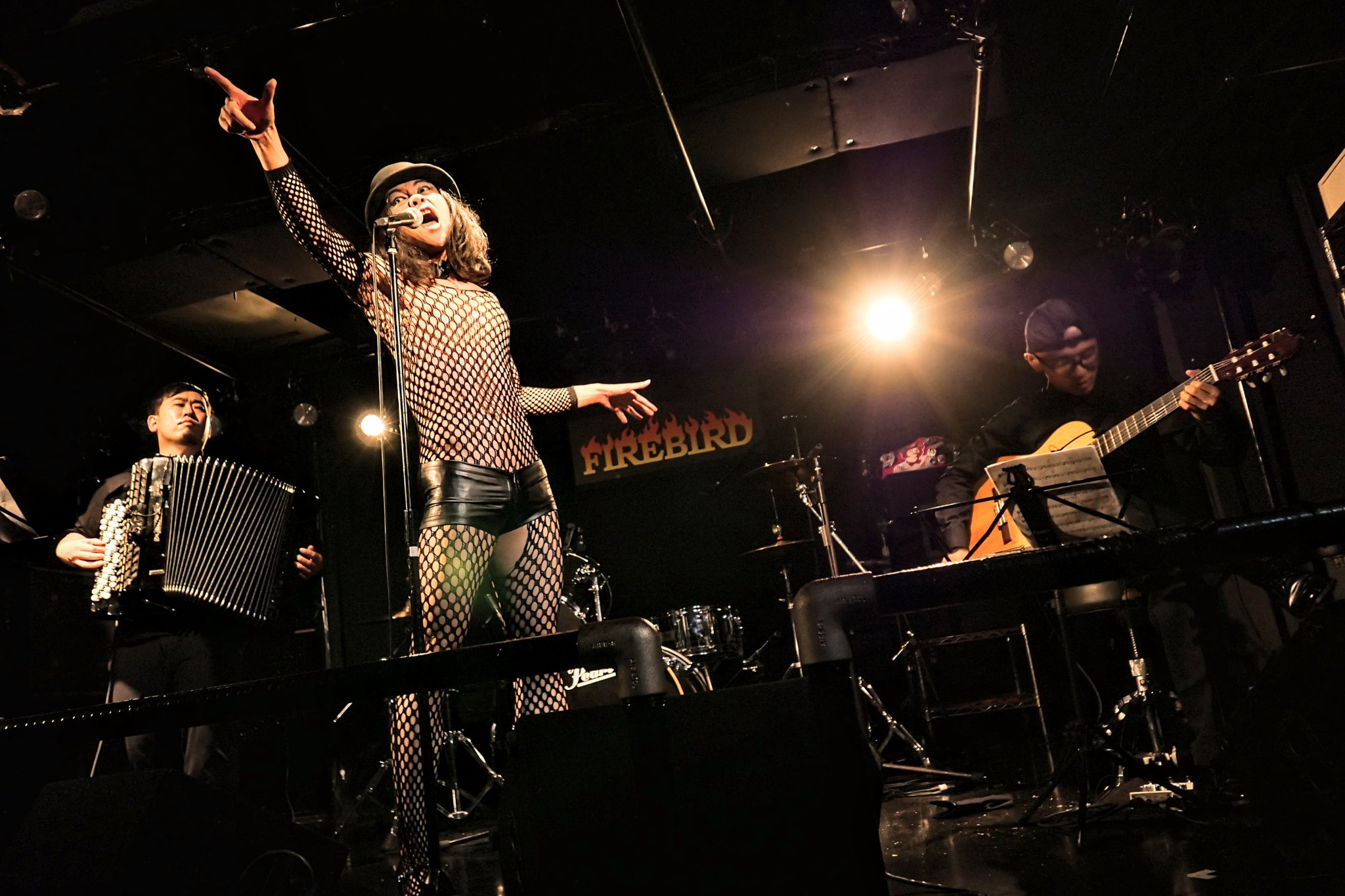 古いラジオから聞こえてくるような中毒性のある歌声をシンプルな音にのせ、聴く者を異空間に引きずり込むアンニュイポップな歌うたい。オールドジャズ、ロックンロール、ブルース、フレンチポップ、昭和歌謡などの様々なニュアンスを漂わせ、歌う姿はいつも物語を感じさせる。